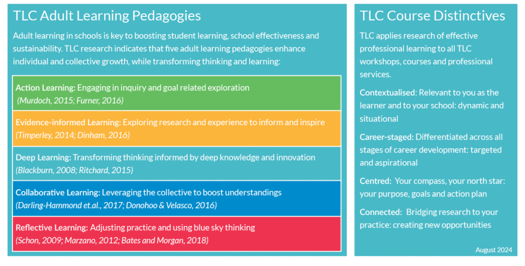 Through The Learning Centre, high quality, research based, and contextualised Professional Learning opportunities are designed and delivered, taking into account the ways that adults and teachers learn and develop across their career stages.
